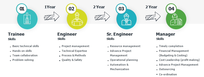 The Industry has evolved with Latest Automation & Software’s which are not taught in the college. The industry requires engineers to get the work done through workers having the skills to read the drawings, know the martials & tools, plan the work, report the progress, evaluate the performance of all resources. These techniques are not taught in the colleges